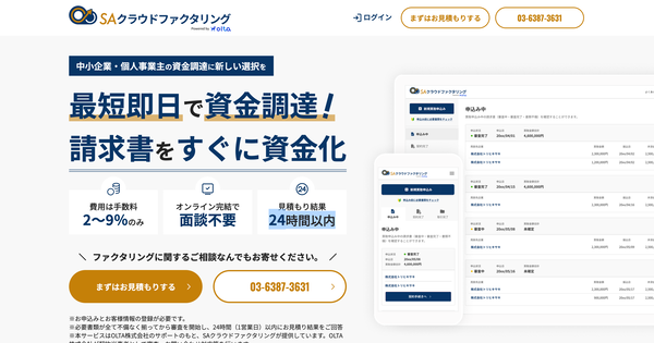 | SAクラウドファクタリング | 2〜9% | 下限・上限なし | 最短即日 |